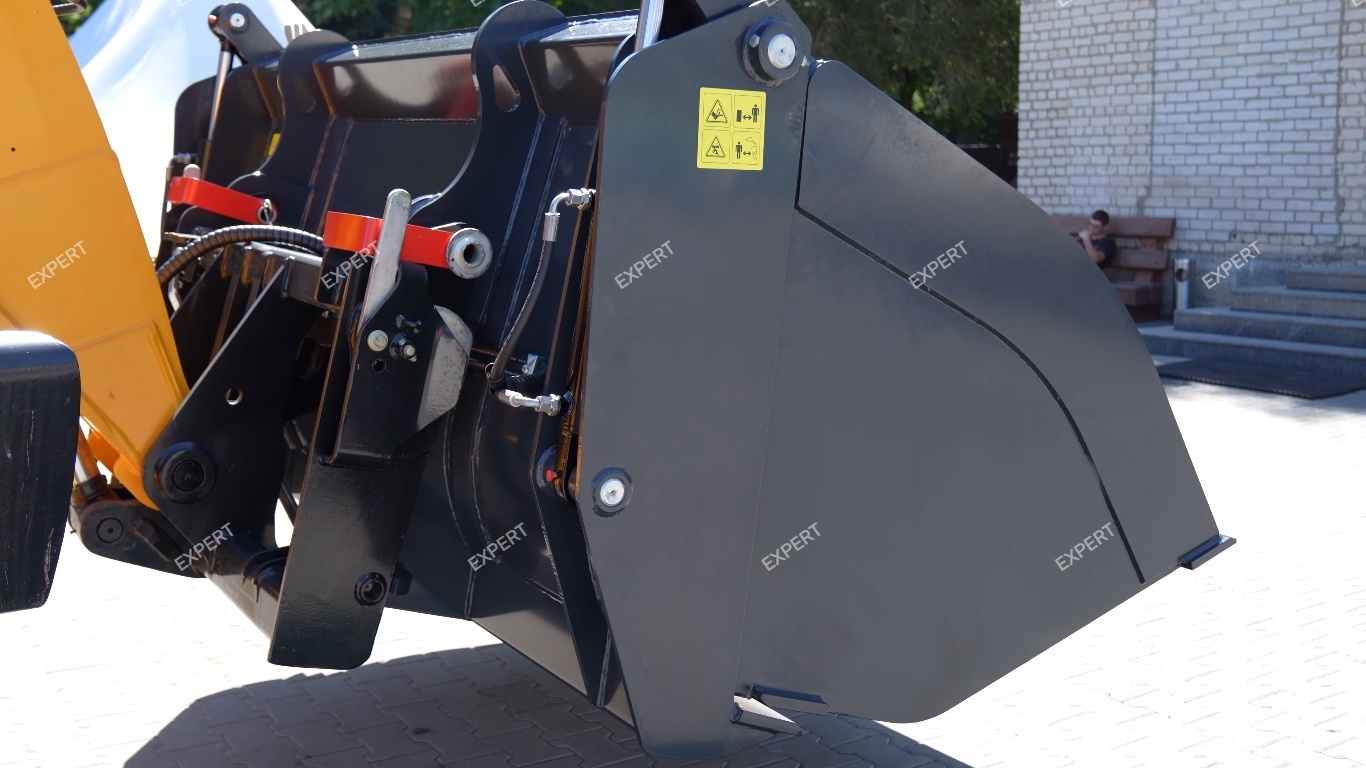 Зерновой ковш с грейферным захватом имеет увеличенный геометрический объем (от 1,0 до 2,5 м³ и более), оптимизированную форму для работы с сыпучими материалами и оснащается подвижной верхней челюстью (грейфером). В режиме ковша устройство работает как обычный зерновой ковш, позволяя быстро загружать и перемещать насыпное зерно. В режиме грейфера верхняя челюсть прижимает груз к нижней части, обеспечивая надежную фиксацию мешков, биг-бэгов и другой мягкой тары при транспортировке.